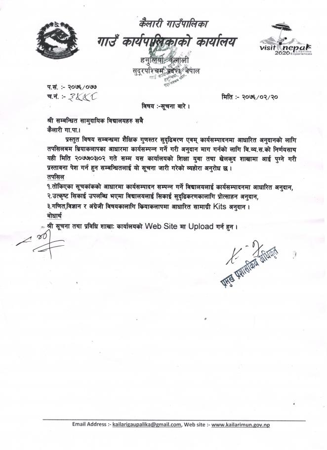 लेखा परीक्षण सम्बन्धी सूचना (कैलारी गाउँपालिका शिक्षा शाखा)