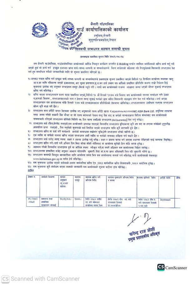 INVITATION FOR THE BIDS सूचना सम्बन्धमा ।